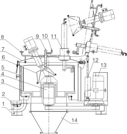 13.Main motor | 14.Outlet hopper |