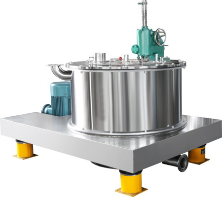 The motor drives the drum to rotate at a medium speed. The feed valve is opened and the material is fed into the drum from the feed pipe. When the feed reaches a predetermined volume, the feeding stops. The drum rises to high-speed rotation. Under the action of centrifugal force, the liquid phase passes through the filter cloth and Drum wall filter holes are discharged. The solid phase is trapped in the rotating drum. After the rotating drum drops to a low speed, the scraper rotates and reciprocates to scrape the solid phase from the drum wall and discharge it from the lower part of the centrifuge.